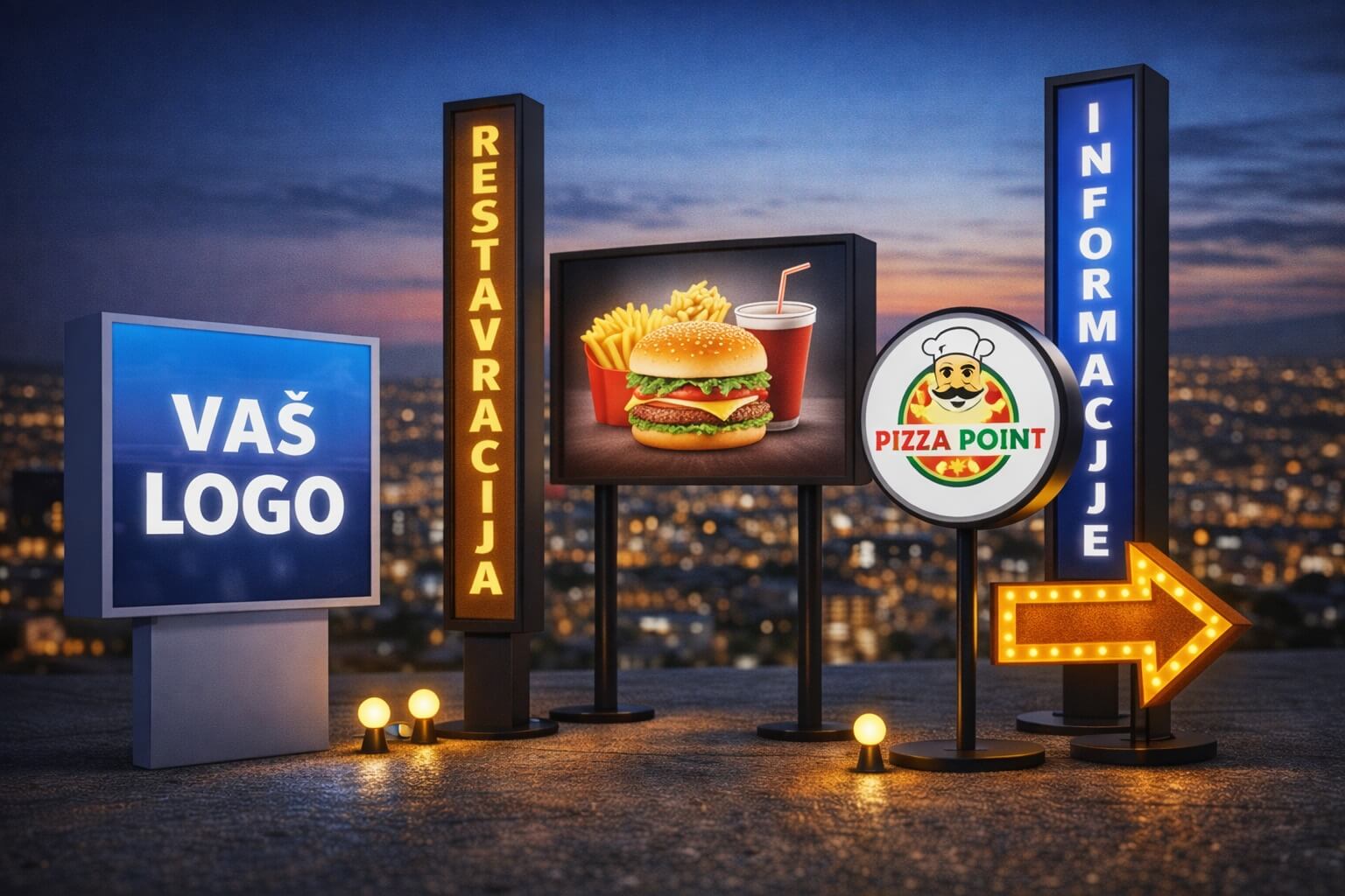 Svetlobne reklamne table so ena najbolj učinkovitejših oblik zunanjega oglaševanja, saj zagotavljajo vidnost podnevi, ponoči in v vseh vremenskih pogojih.